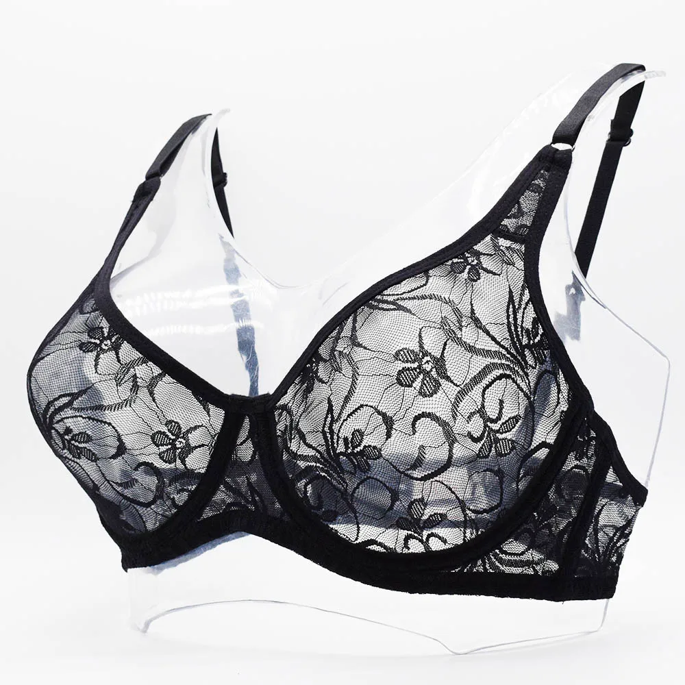 Bras For Womens Black Lace Sheer Bralette Bra Underwired Underwear Floral Homosexual Sexy Lingerie Brassiere A B C D DD Cup
